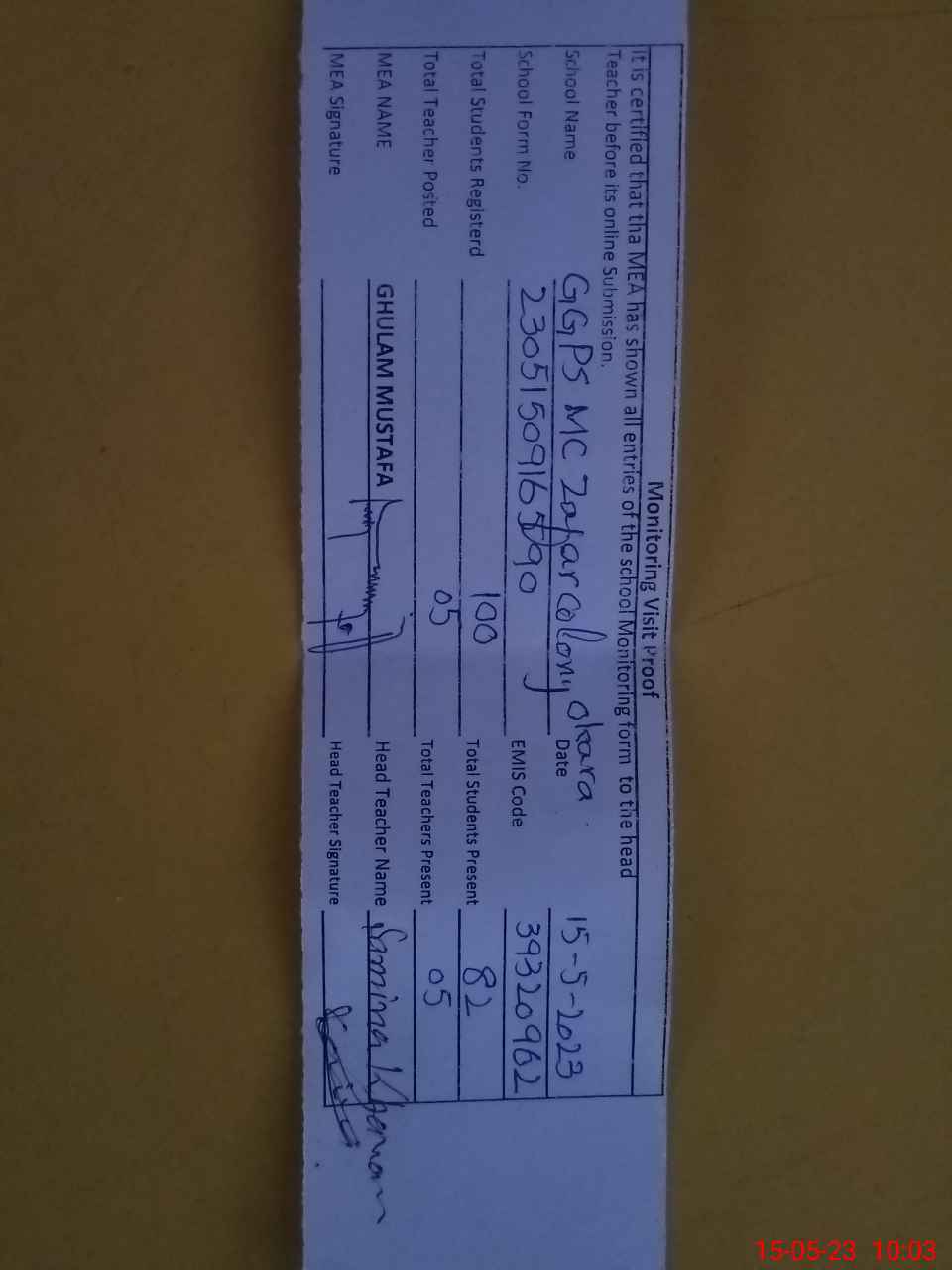 | EMIS Code: 39320962 | Name of School: GGPS MC ZAFAR COLONY | |||