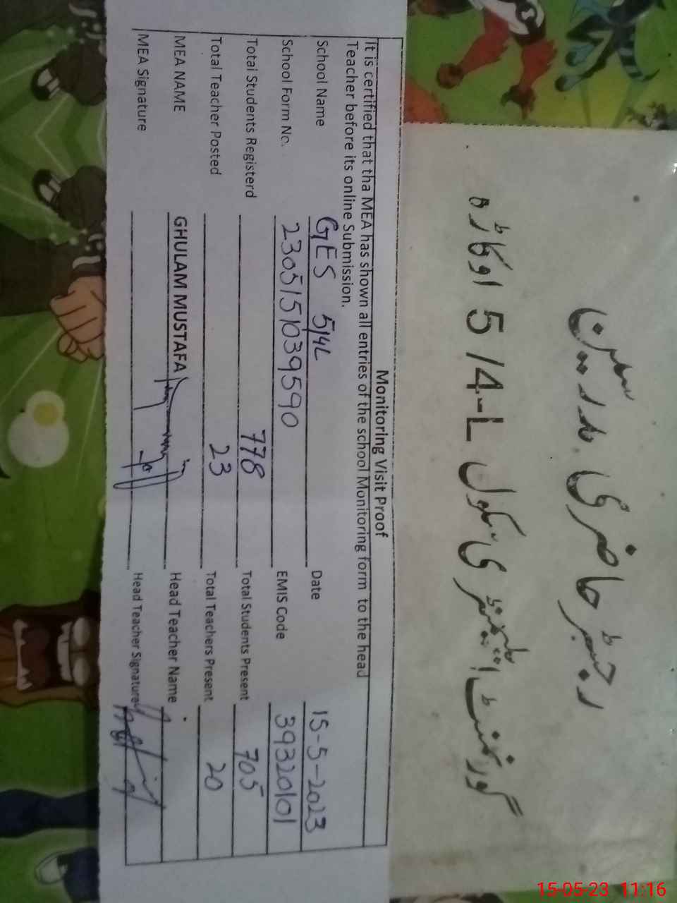 | EMIS Code: 39320101 | Name of School: GES CHAK 5/4-L | |||