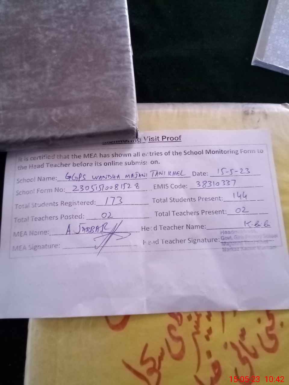 | EMIS Code: 38310337 | Name of School: GGPS WANDHA MANJI TANI KHEL | |||