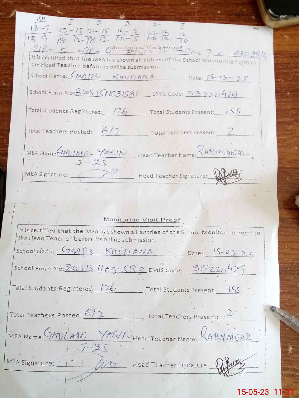 | EMIS Code: 33220429 | Name of School: GMPS KHUTIANA | |||