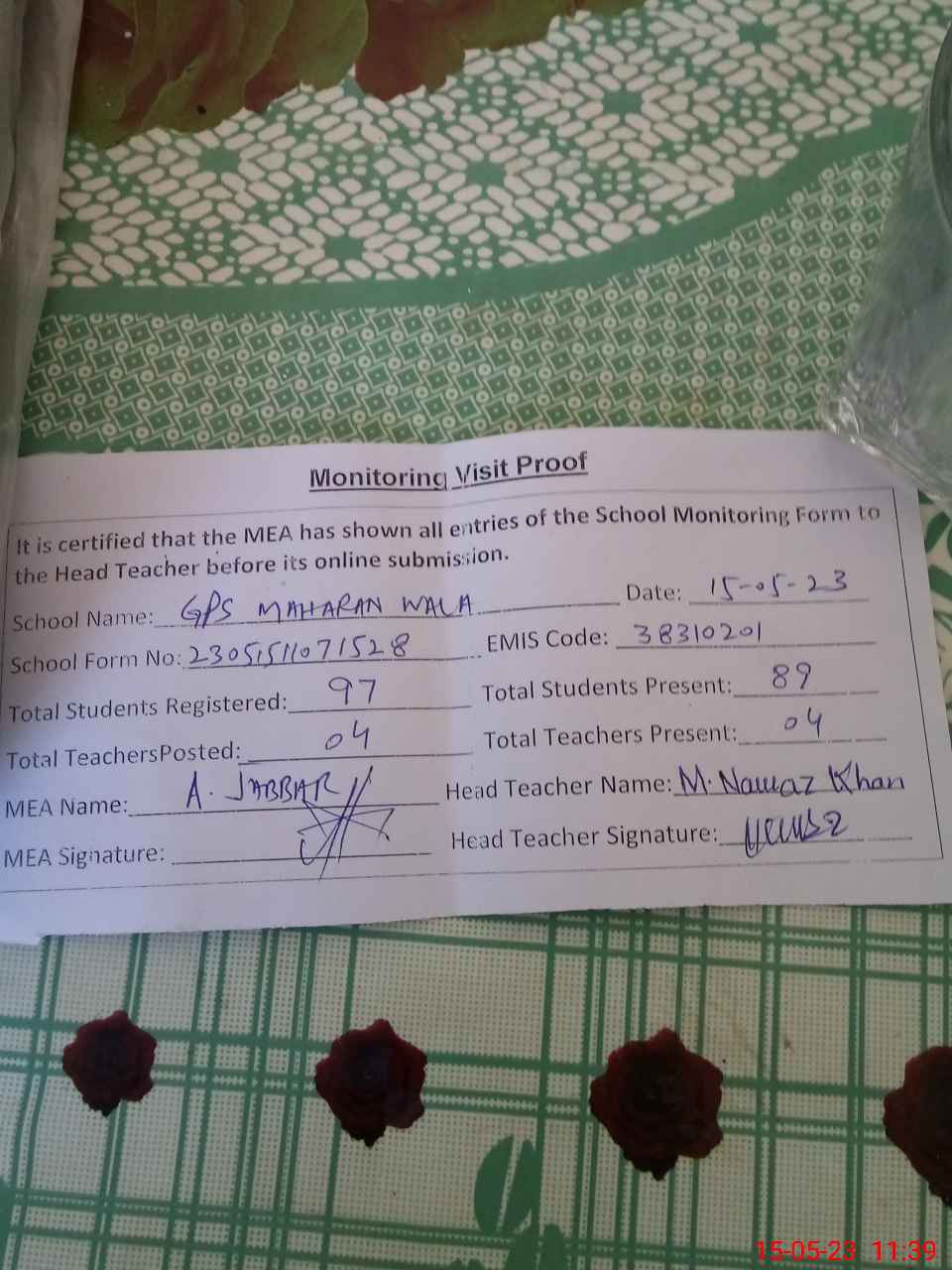 | EMIS Code: 38310201 | Name of School: GPS MAHARAN WALA CENTER GAZI WALA | |||