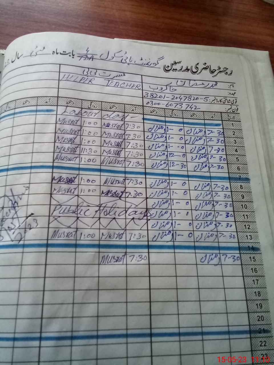 | Name: Si**** Hu**** Sh**** Designation: (School Headmaster's/Headmistress's) HM Phone/Cell Number: 03**** |