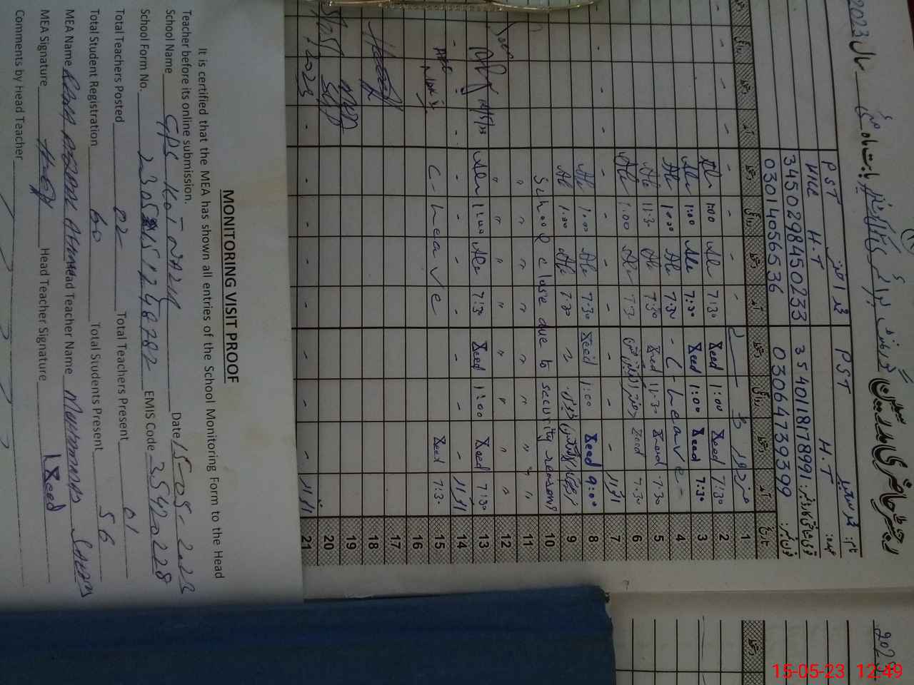 | Name: MU**** AK**** Designation: (School Headmaster's/Headmistress's) PST Phone/Cell Number: 03**** |