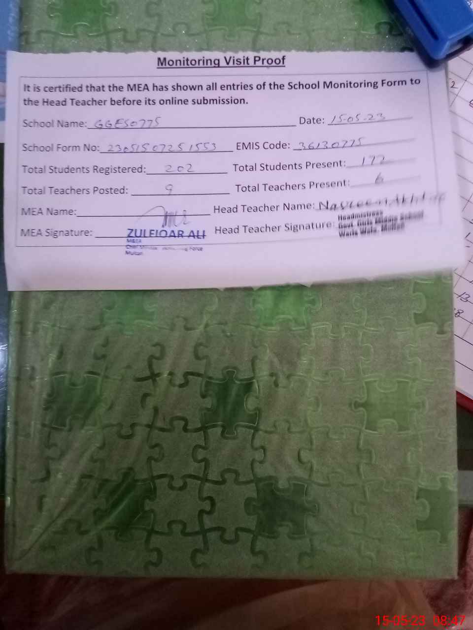 | EMIS Code: 36130775 | Name of School: GGES WARIS WALA MULTAN SADDAR | |||