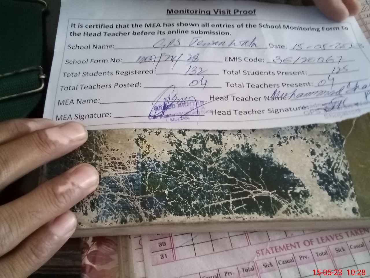 | Attendance Register | Head Teacher | MEA with School | Visit Proof |