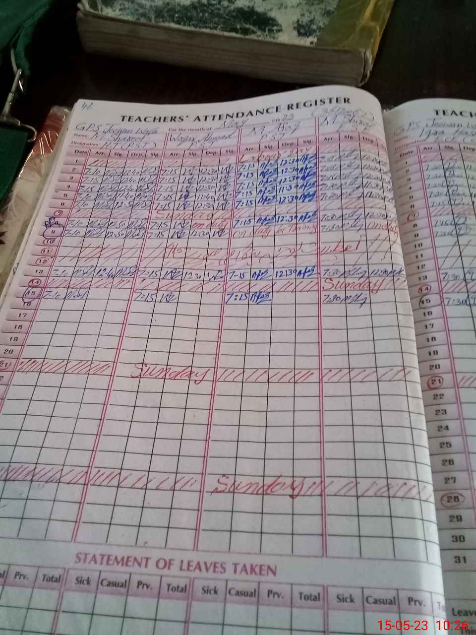 Leave Type | Remarks for Today (Leave,Training, Exam,Absent,Late, Other Duty) |