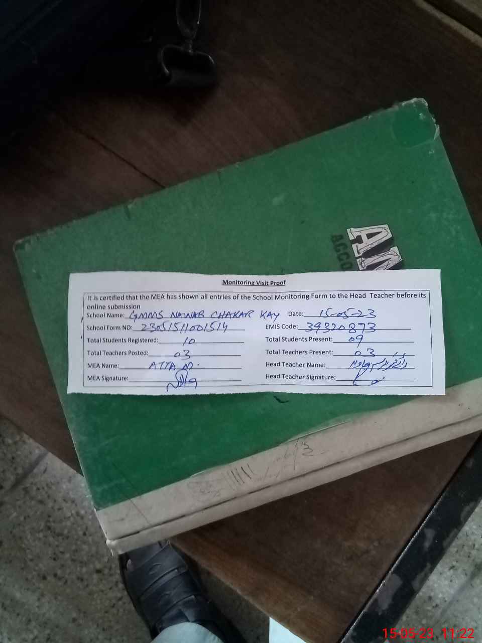 | EMIS Code: 39320873 | Name of School: GMMS NAWAB CHAKAR KE | |||