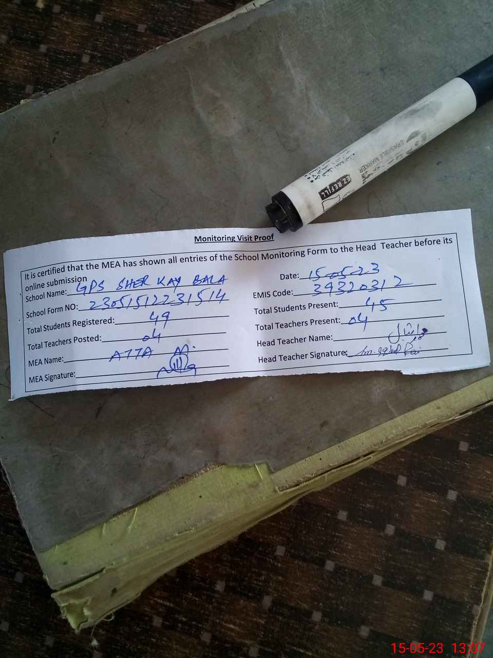 | EMIS Code: 39320312 | Name of School: GPS SHER KAY BALA | |||