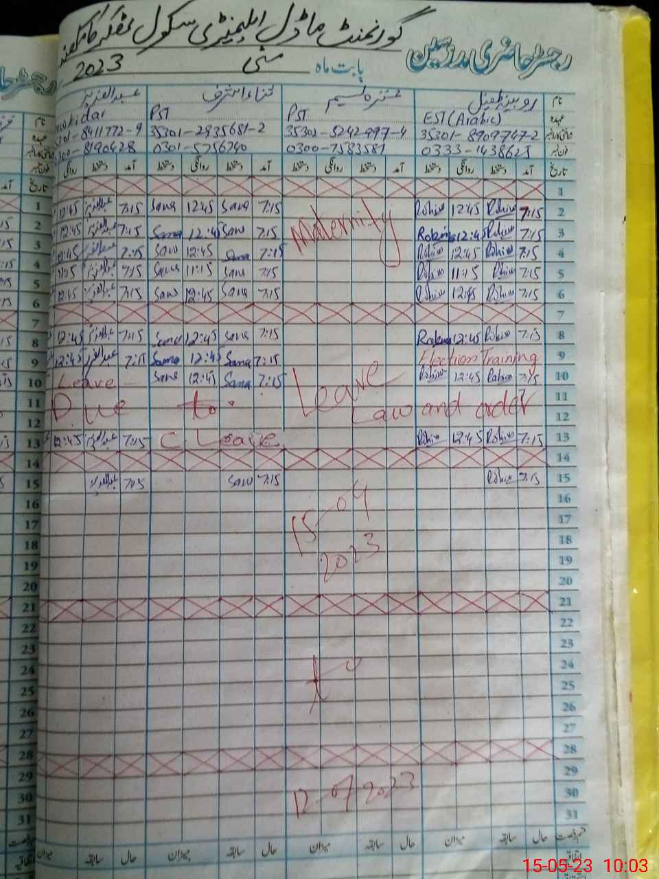 | Name: Sh**** No**** Designation: (School Headmaster's/Headmistress's) SST Phone/Cell Number: 03**** |