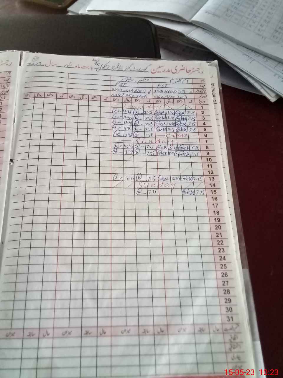 | CNIC | Full Name | Designation | R/C | Absence During Last Calender Month |