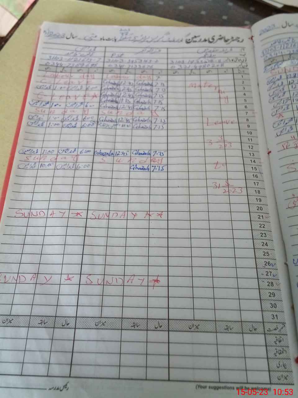 | CNIC | Full Name | Designation | R/C | Absence During Last Calender Month |