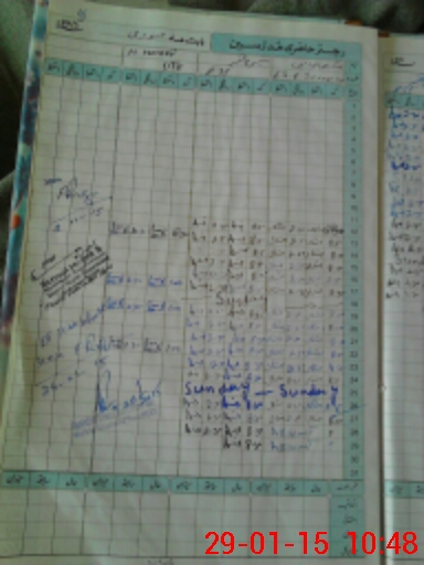 | CNIC | Full Name | Designation | R/C | Absence During Last Calender Month |