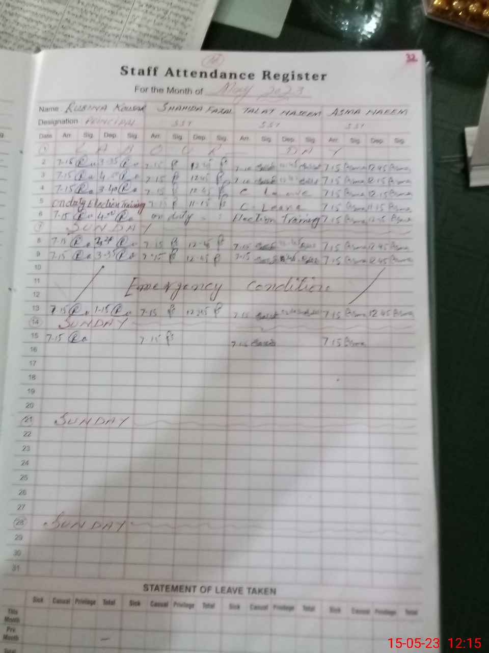 | 31**** | Ab**** Sa**** | PST | Regular | 5 | 0 | 0 | 0 | 0 | 0 | 0 | 3 | 2 | Absent (Un-Authorized) |