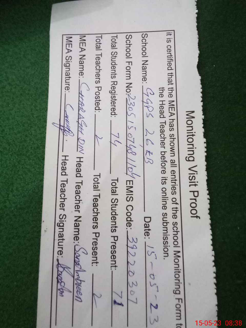 | EMIS Code: 39220307 | Name of School: GGPS 26 EB | |||