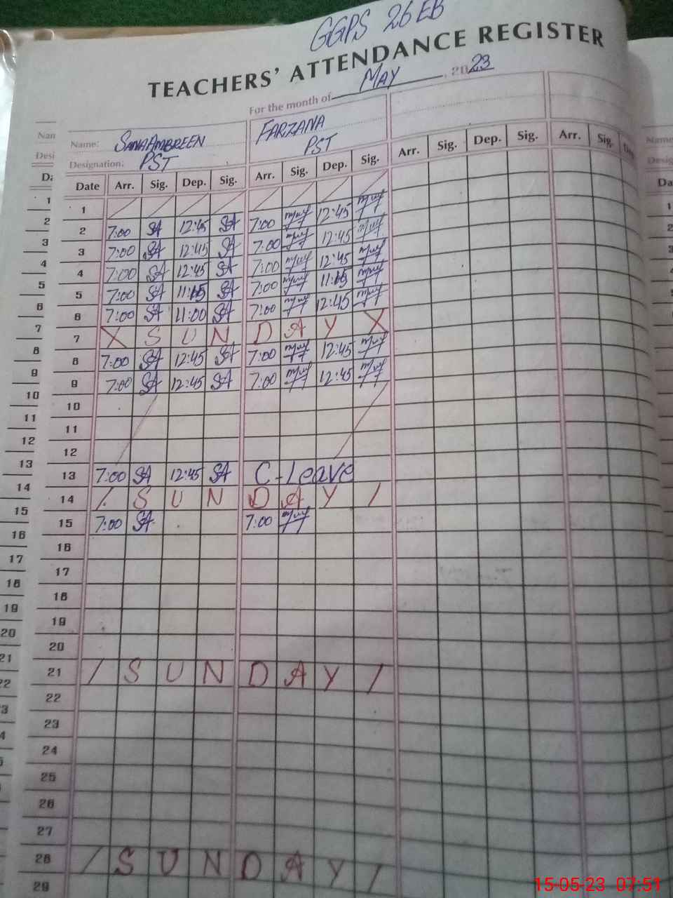 | Name: SA**** AM**** Designation: (School Headmaster's/Headmistress's) PST Phone/Cell Number: 03**** |