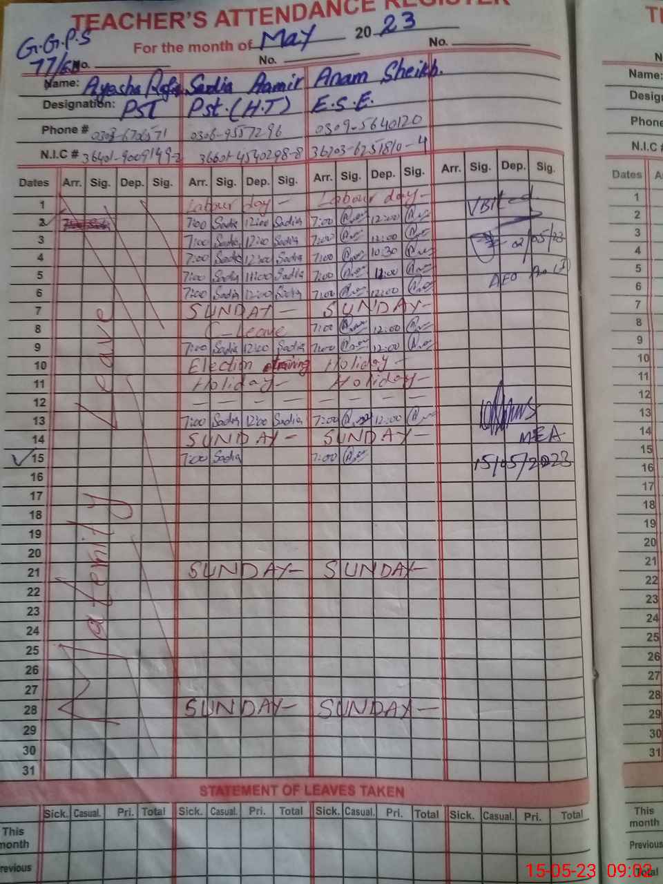 | Name: SA**** AA**** Designation: (School Headmaster's/Headmistress's) PST Phone/Cell Number: 03**** |