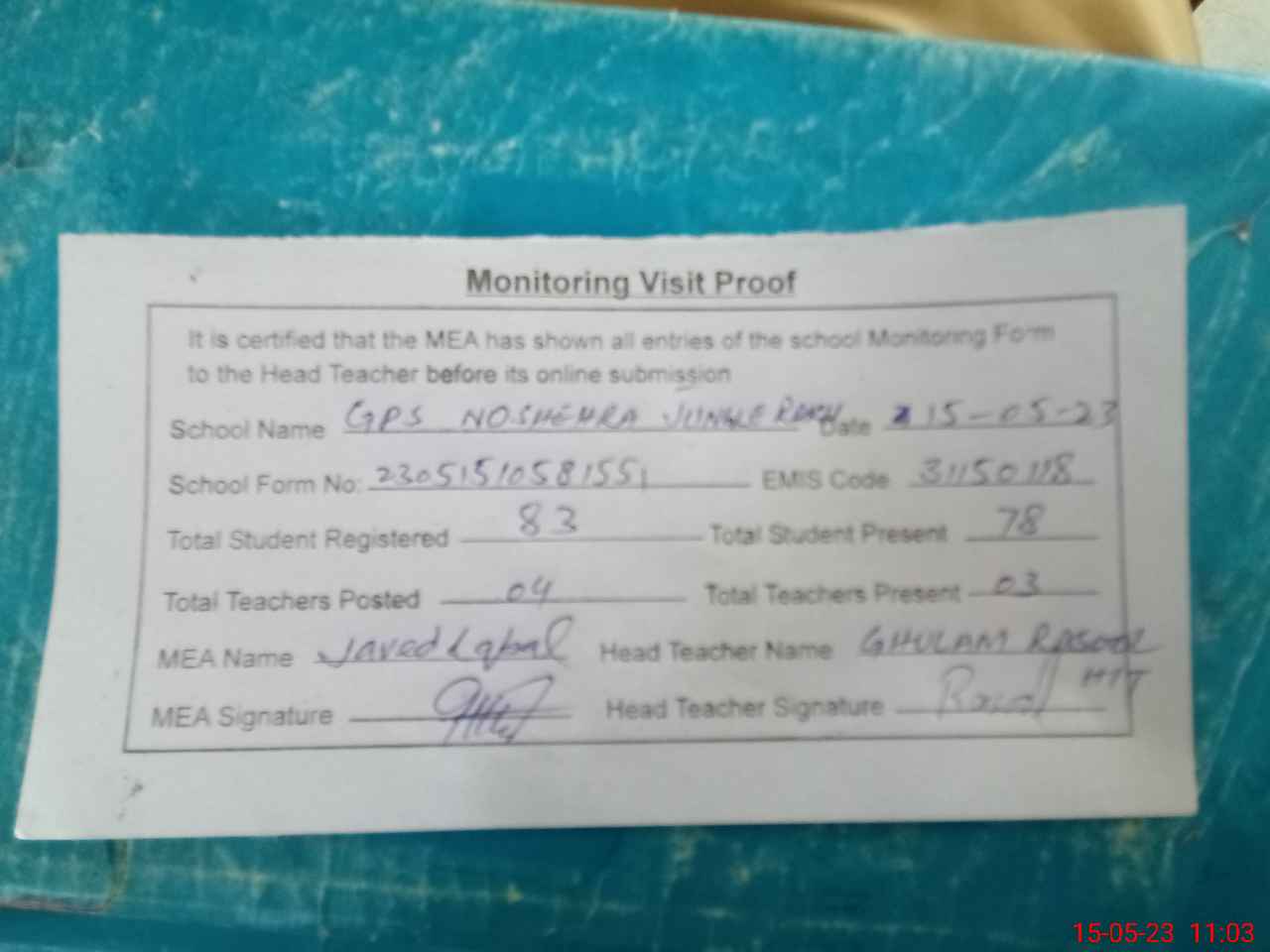 | EMIS Code: 31150118 | Name of School: GPS NOSHEHRA JUNGLE RAKH | |||
