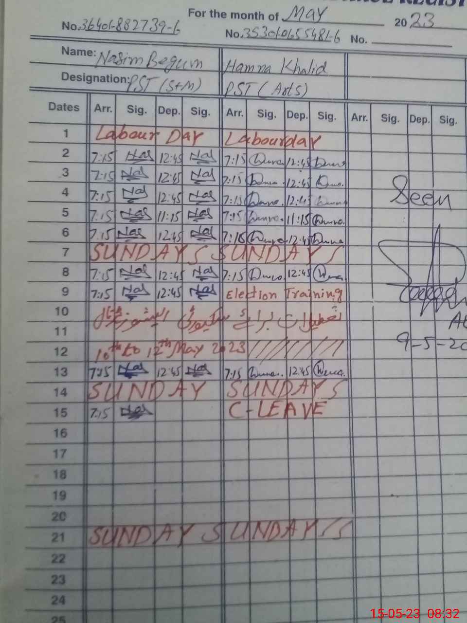 | CNIC | Full Name | Designation | R/C | Absence During Last Calender Month |