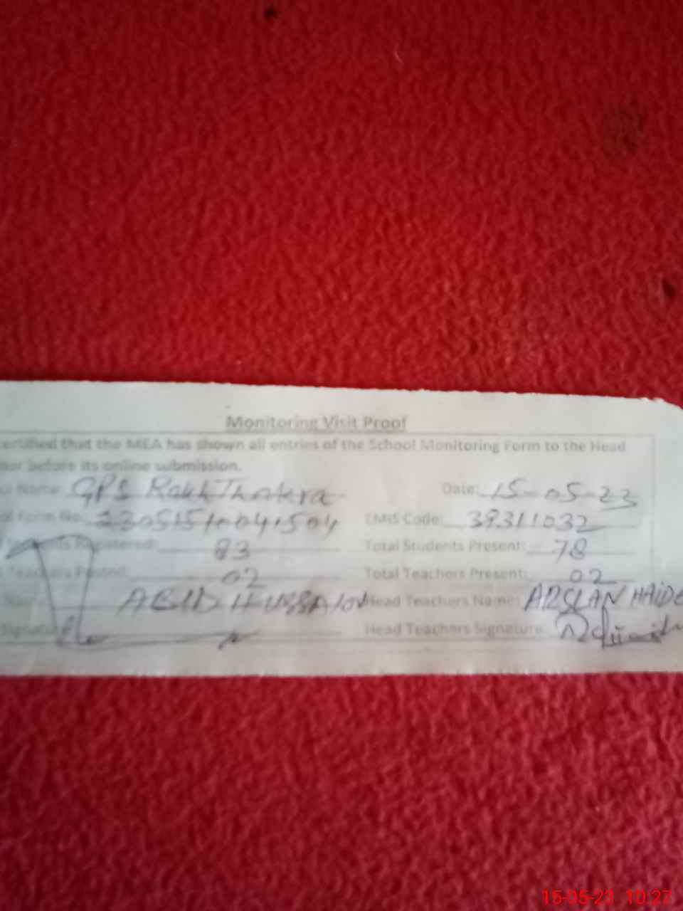 | EMIS Code: 39311032 | Name of School: GPS RAKH THAKRA | |||