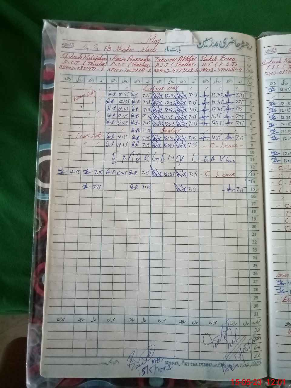 | Leave | Duty | Absent | Maternity | Medical | Ex- Pak |