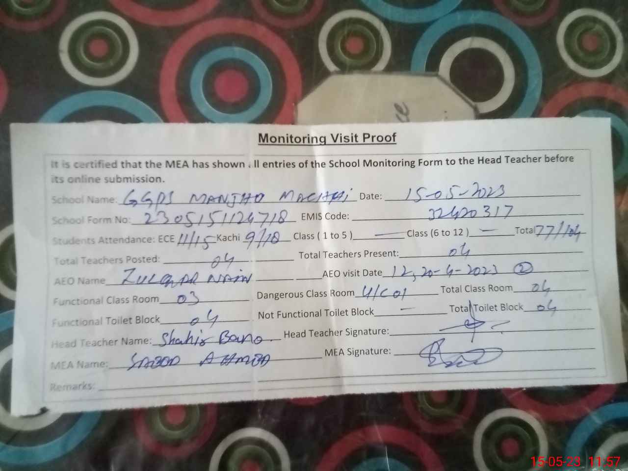 | EMIS Code: 32420317 | Name of School: GGPS MANJHU MACHHI | |||