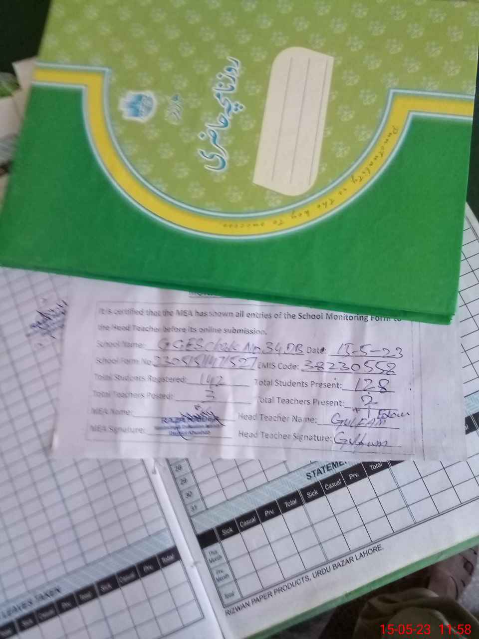 | EMIS Code: 38230558 | Name of School: GGES CHAK NO.34 DB | |||