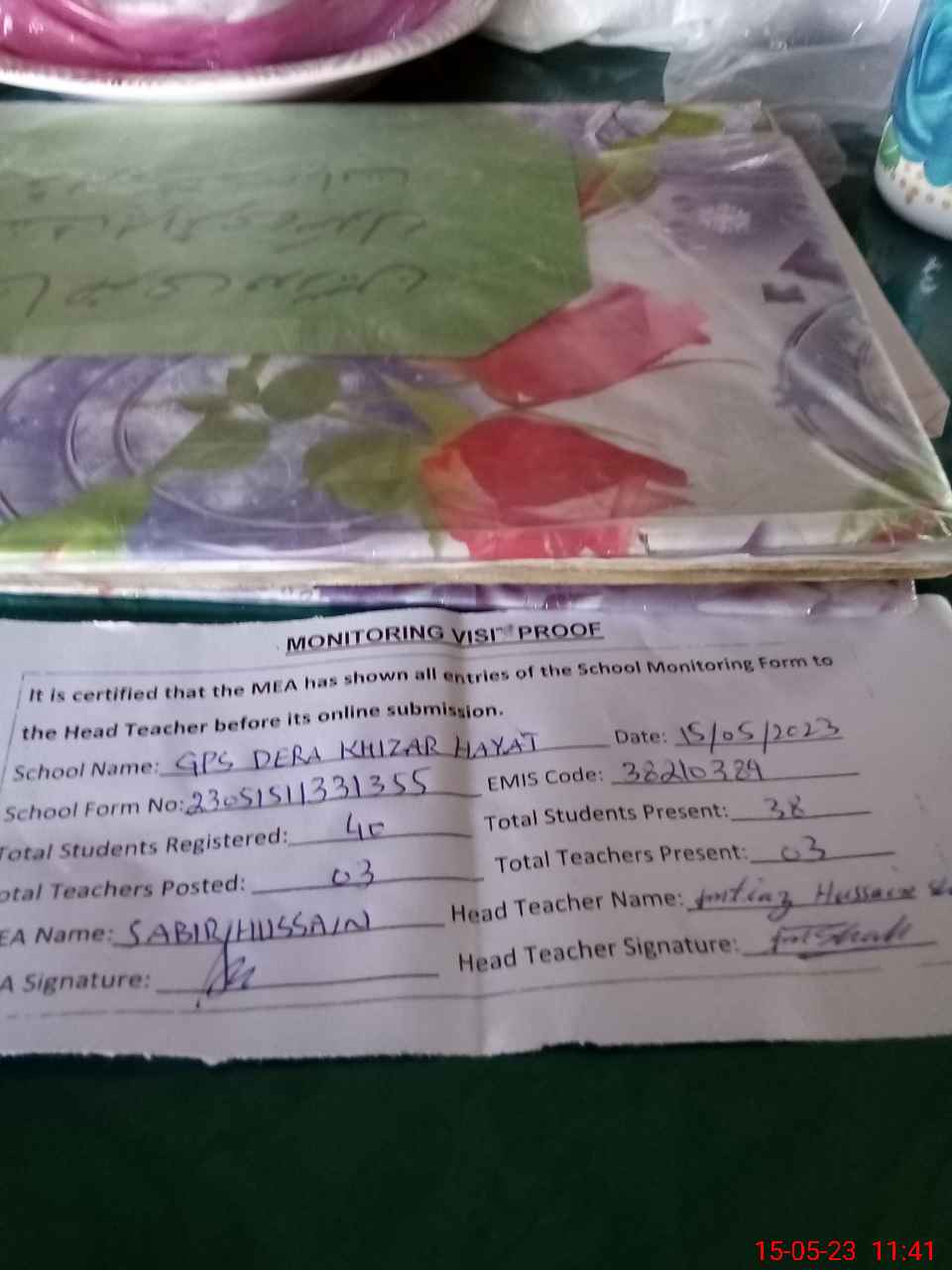 | Attendance Register | Head Teacher | MEA with School | Visit Proof |
