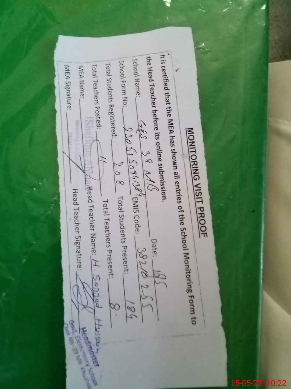 | Certified that this School was Inspected by the Undersigned MEA/DMO Today and the Information Stated Above is as Per Record. | |||||