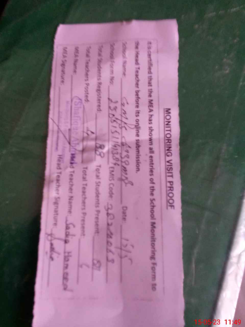 | Certified that this School was Inspected by the Undersigned MEA/DMO Today and the Information Stated Above is as Per Record. | |||||