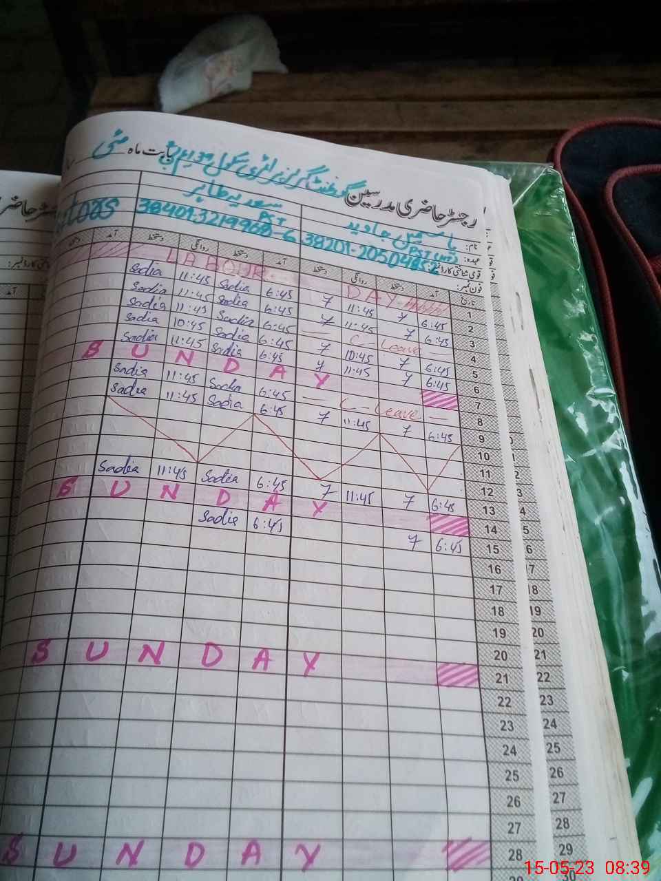 | CNIC | Full Name | Designation | R/C | Absence During Last Calender Month |