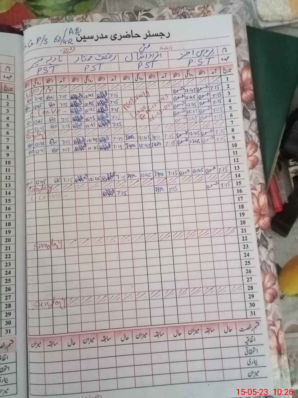 | Leave | Duty | Absent | Maternity | Medical | Ex- Pak |