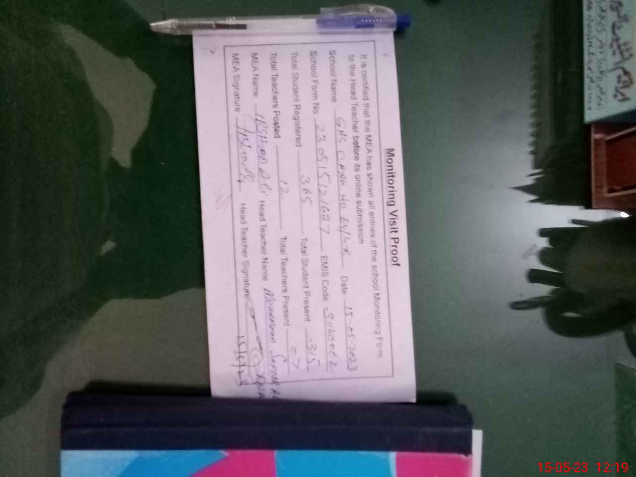 | Certified that this School was Inspected by the Undersigned MEA/DMO Today and the Information Stated Above is as Per Record. | |||||