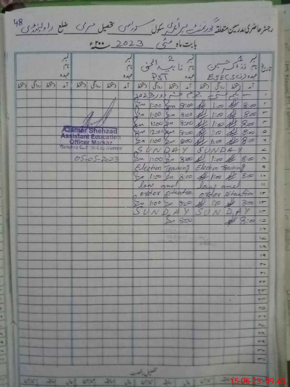 | Name: Na**** Hu**** Designation: (School Headmaster's/Headmistress's) ESE Phone/Cell Number: 03**** |
