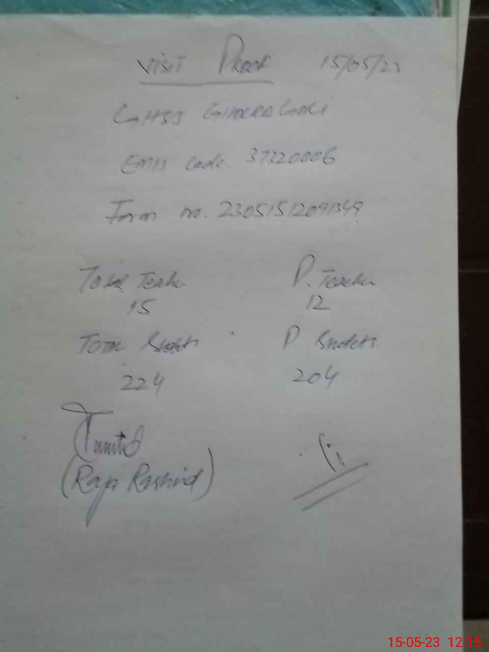 | Attendance Register | Head Teacher | MEA with School | Visit Proof |