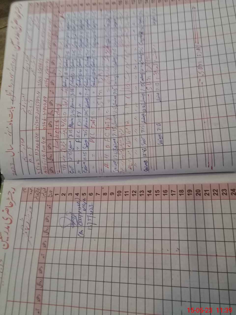 | CNIC | Full Name | Designation | R/C | Absence During Last Calender Month |