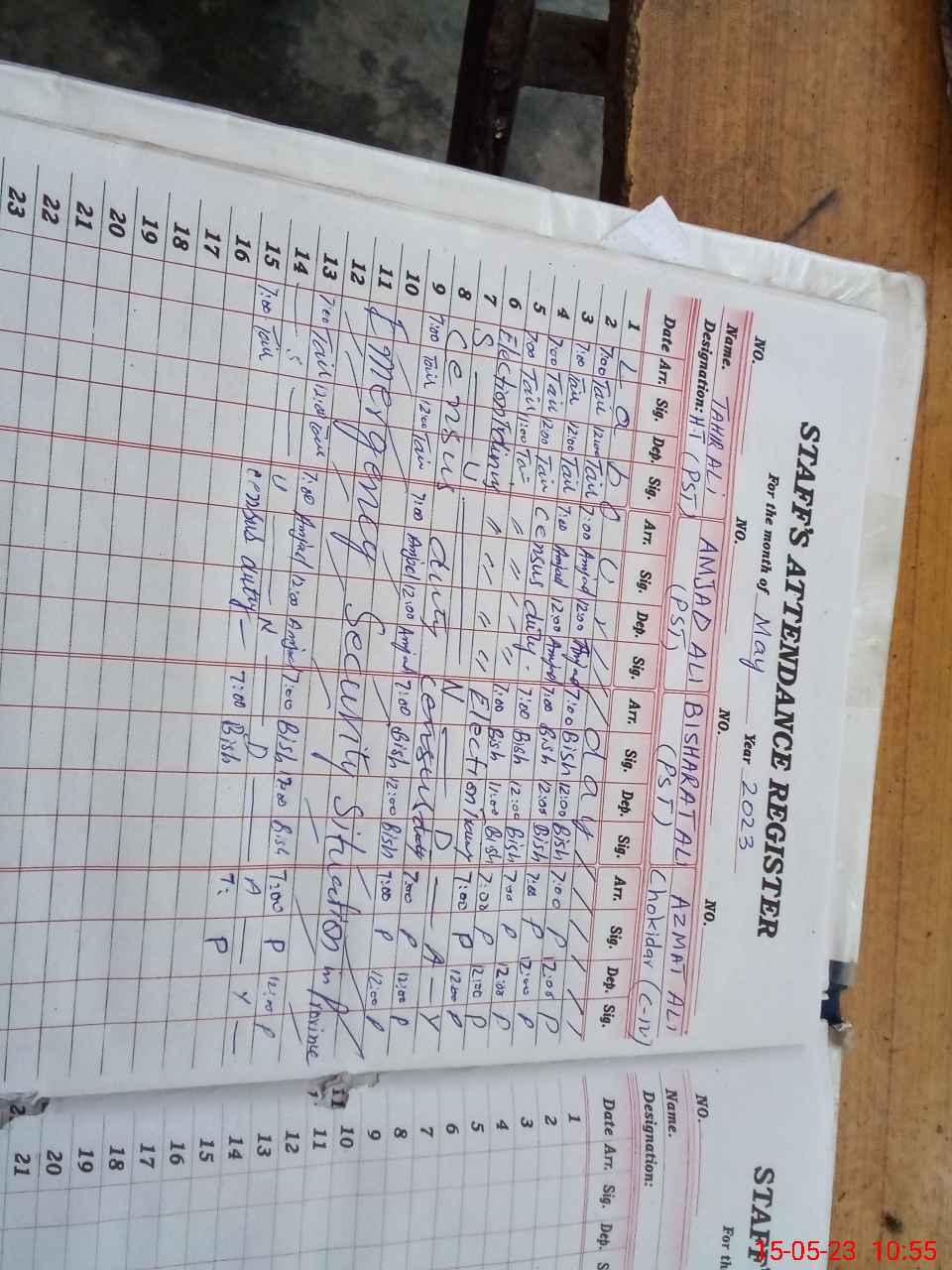 | CNIC | Full Name | Designation | R/C | Absence During Last Calender Month |