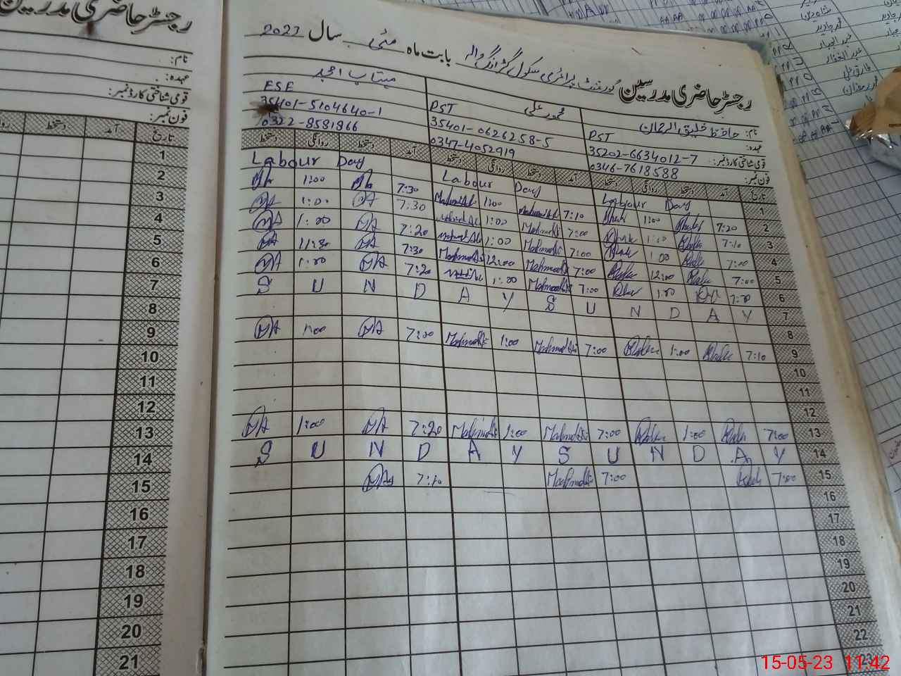 | Name: Ha**** Kh**** UrRe**** Designation: (School Headmaster's/Headmistress's) PST Phone/Cell Number: 03**** |