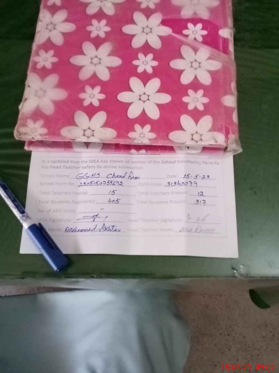 | Attendance Register | Head Teacher | MEA with School | Visit Proof |