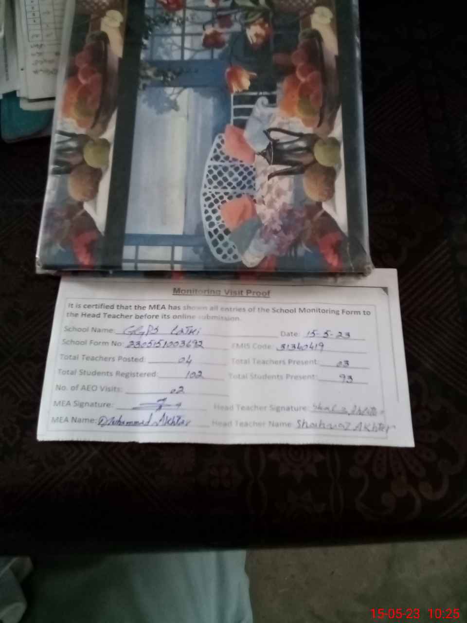 | Attendance Register | Head Teacher | MEA with School | Visit Proof |