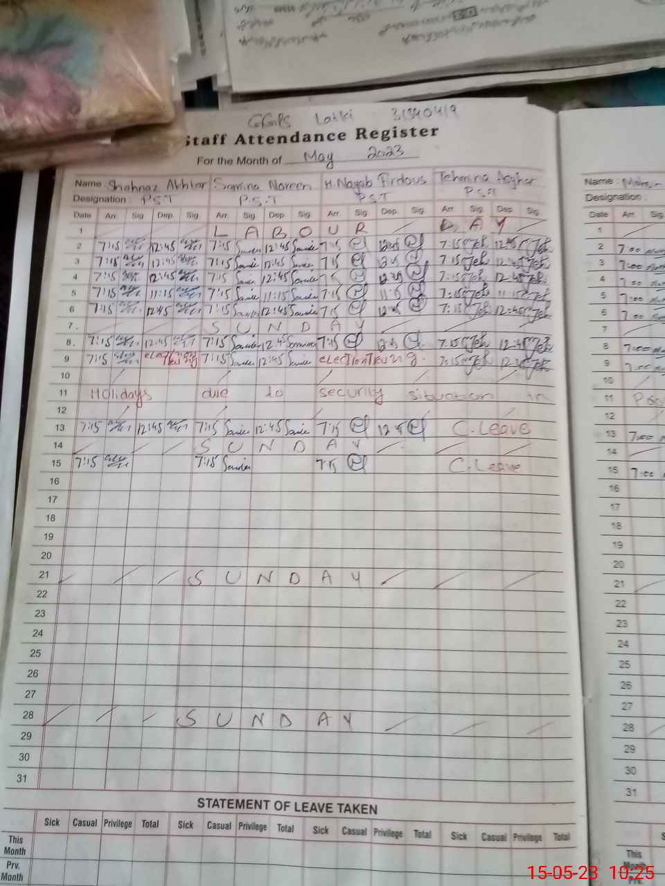 | Leave | Duty | Absent | Maternity | Medical | Ex- Pak |