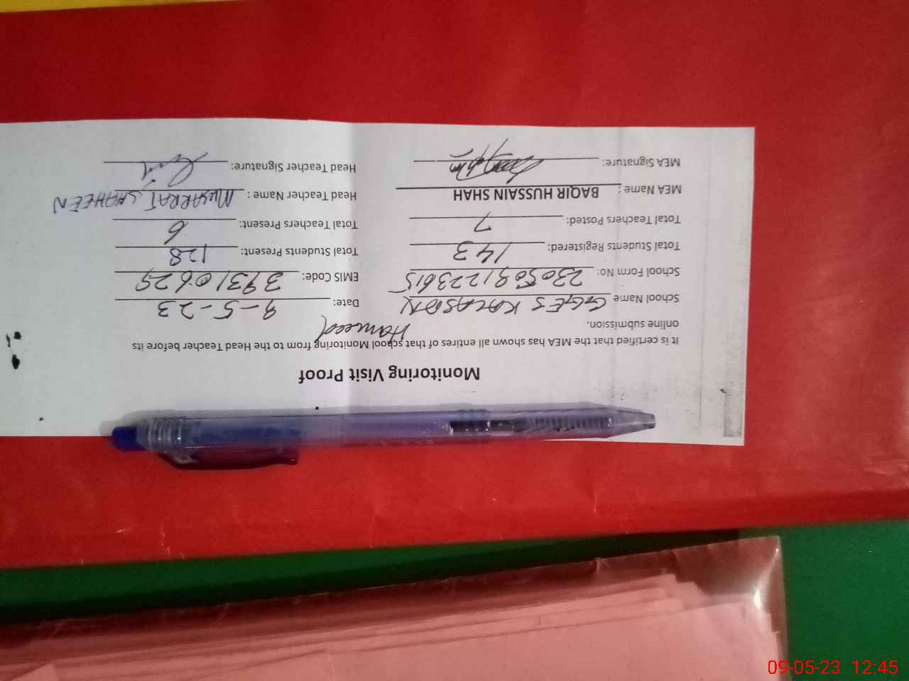 | Attendance Register | Head Teacher | MEA with School | Visit Proof |