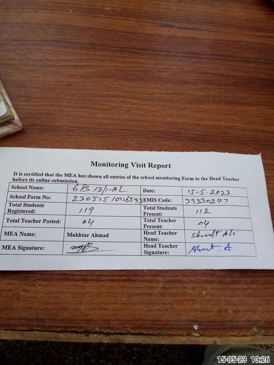 | EMIS Code: 39330247 | Name of School: GPS CHAK NO 13/1.AL | |||