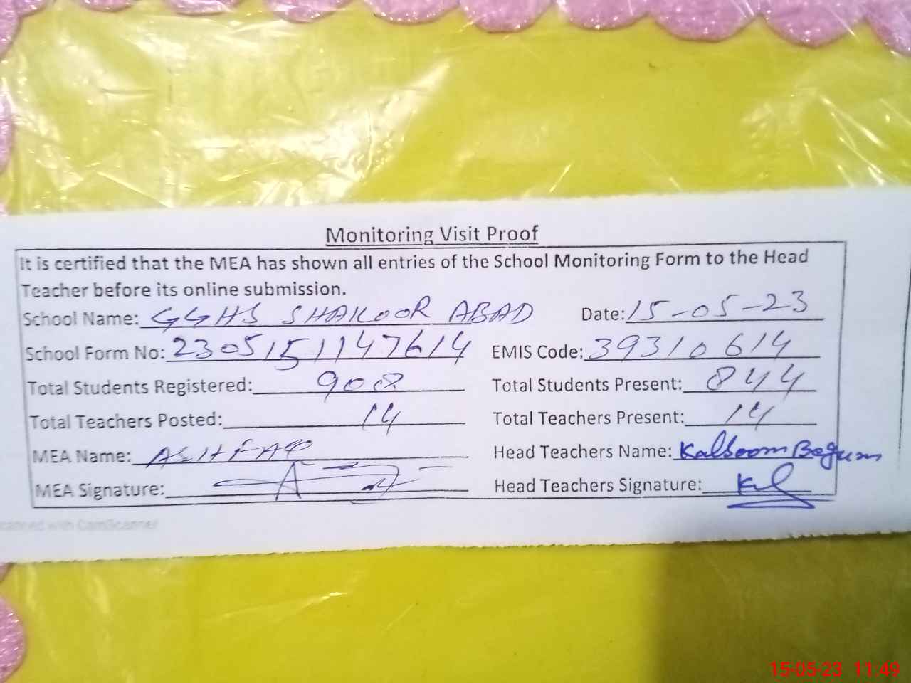 | EMIS Code: 39310614 | Name of School: GGHS SHAKOOR ABAD | |||