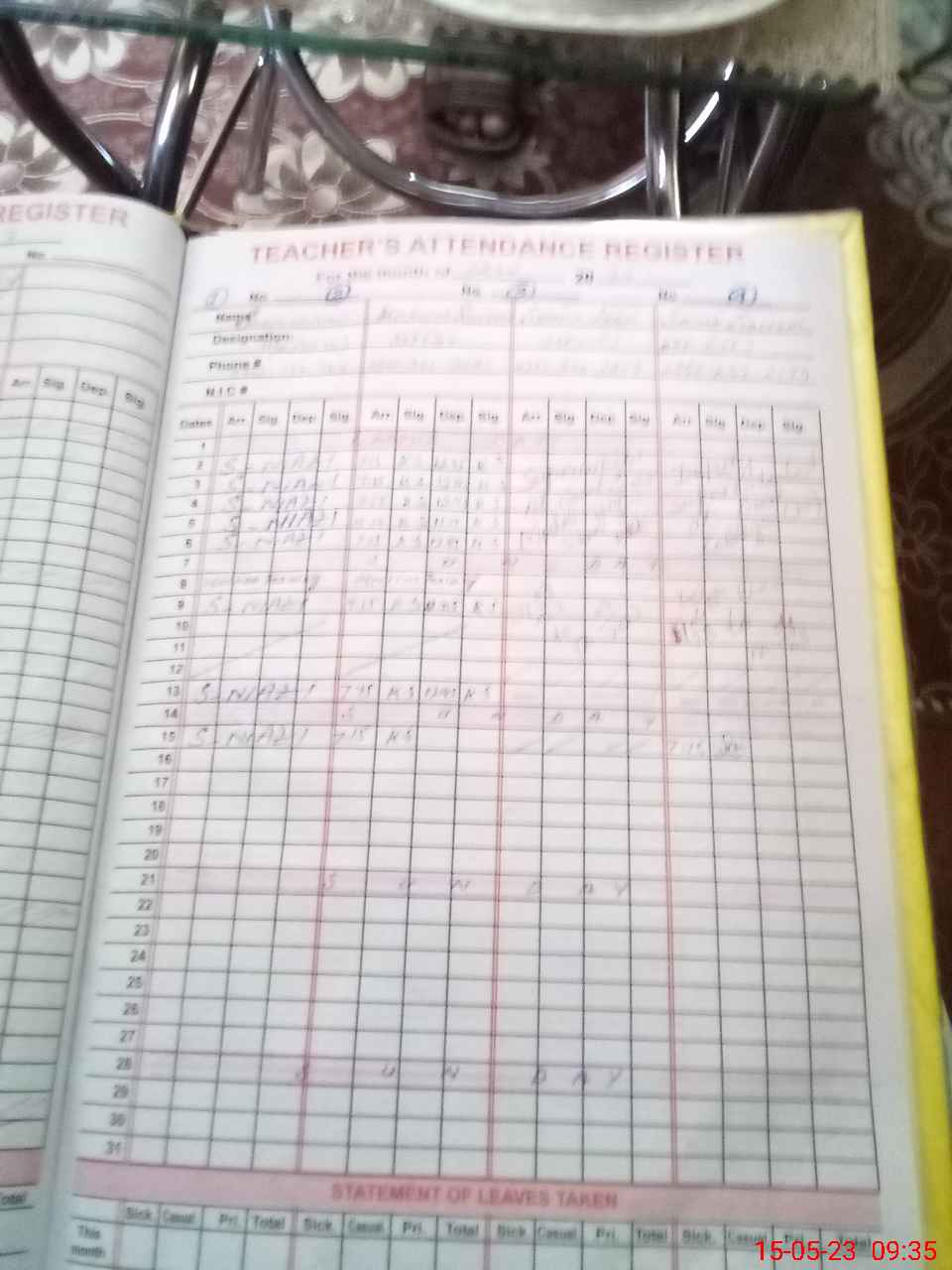 | CNIC | Full Name | Designation | R/C | Absence During Last Calender Month |