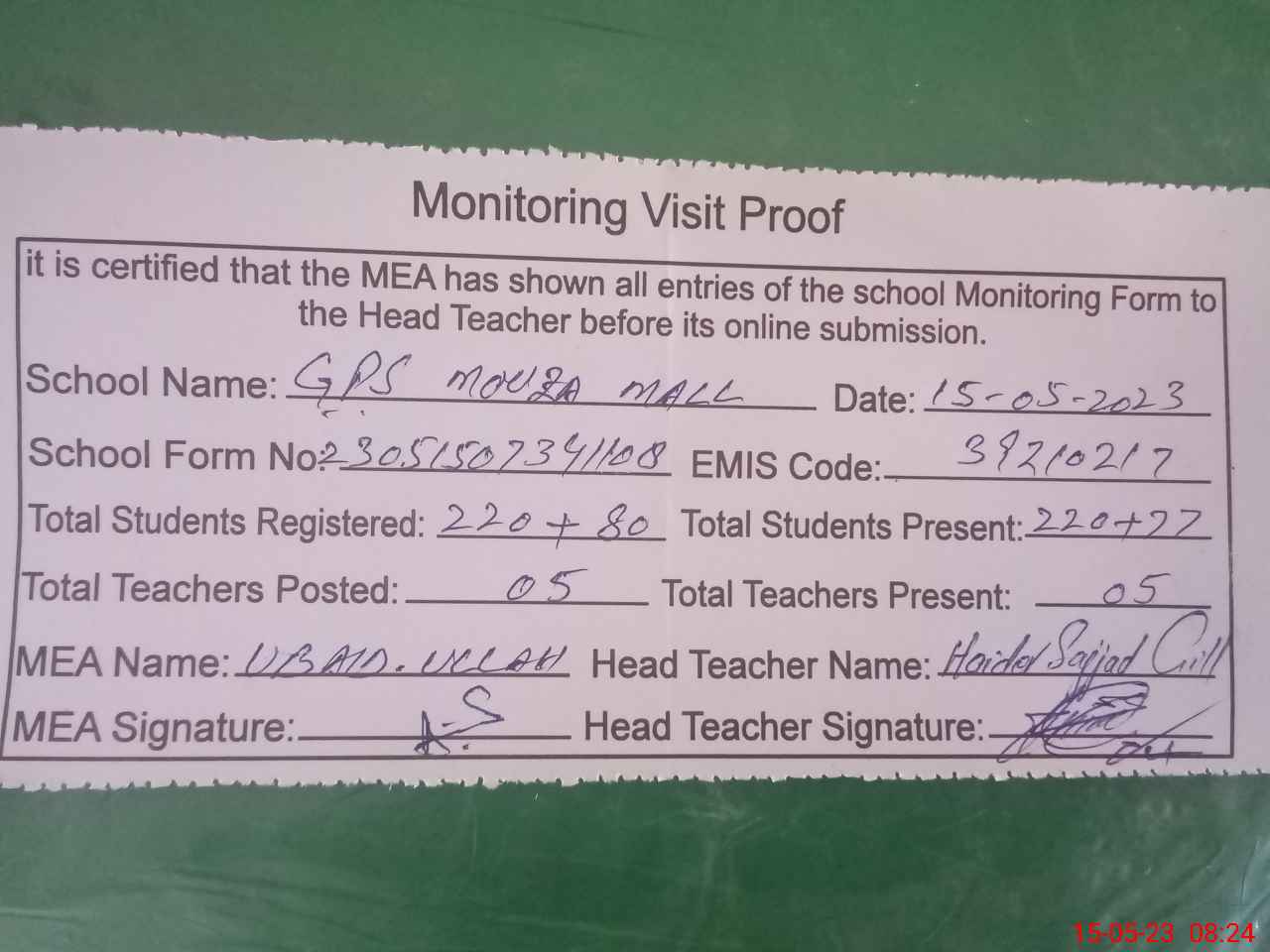 | EMIS Code: 39210217 | Name of School: GPS MOUZA MALL | |||