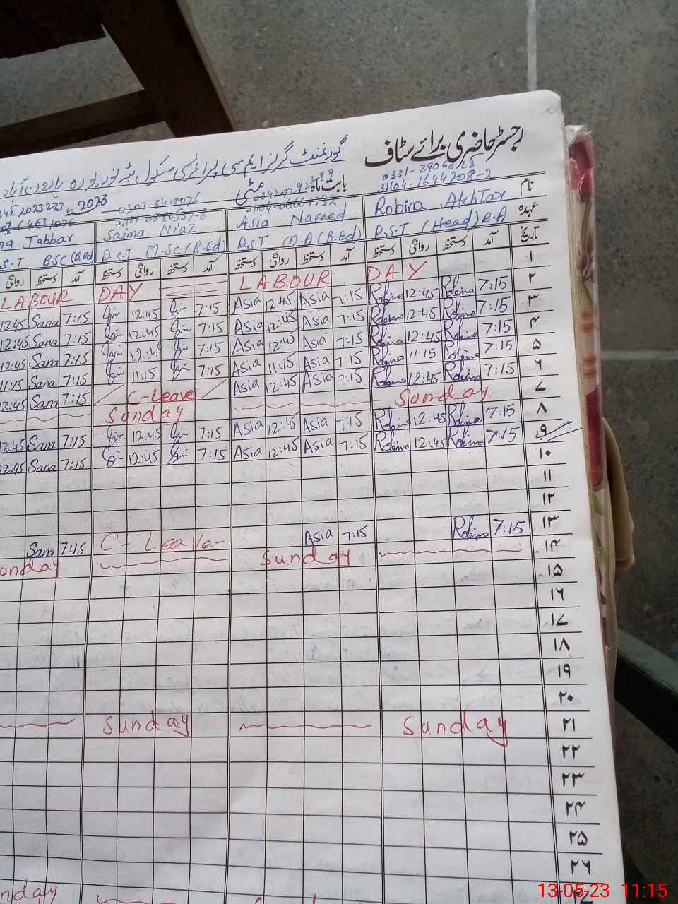 | CNIC | Full Name | Designation | R/C | Absence During Last Calender Month |