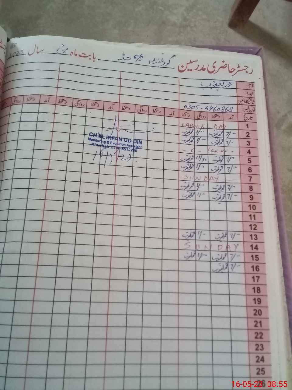 | Name: Mu**** Ah**** Designation: (School Headmaster's/Headmistress's) Est General Phone/Cell Number: 03**** |