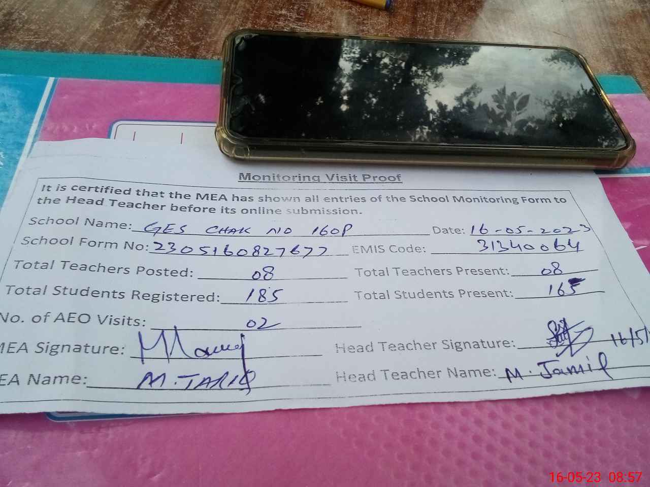 | EMIS Code: 31340064 | Name of School: GES CHAK 160/P | |||