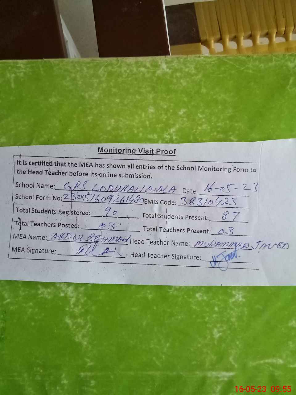 | EMIS Code: 38310423 | Name of School: GPS LODHRAN WALA | |||