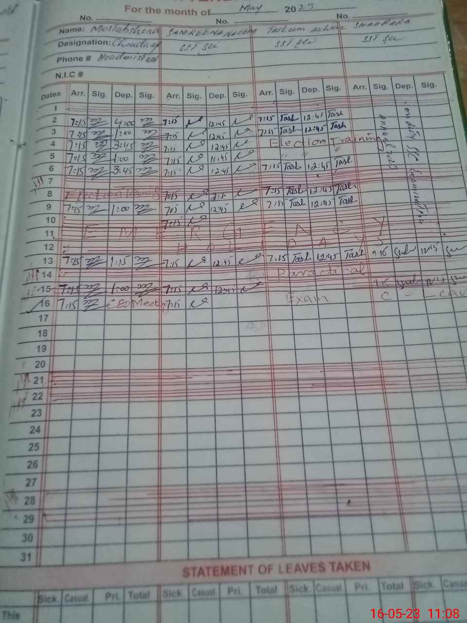 | 36**** | Ta**** Ak**** | Regular | 2 | 0 | 0 | 0 | 0 | 0 | 0 | 0 | 2 | Exam Duty | |